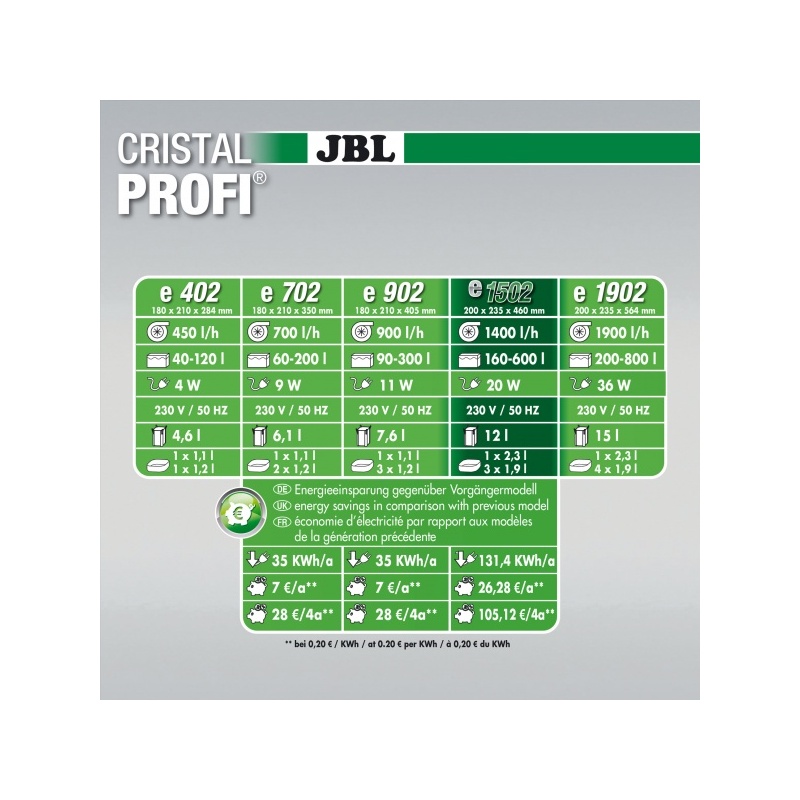 JBL CRISTALPROFI e välisfiltrid on end tõestanud väga töökindlate ja ülitõhusate akvaariumi veepuhastajatena. Uuendatud mudel!